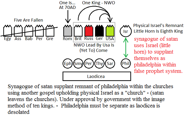 This is the most complete picture yet - one merely has to replace Philadelphia with the source of leaven and then place the little horn as the "rest element" of the beast (that may also be replaced by image - the ten kings). The device of satan has been employed on Israel since Egypt and has left its impression. It is ideal as a leavening influence within the beast system. However the damage is done by the false church of the synagogue of satan, the false prophet, not the little horn.