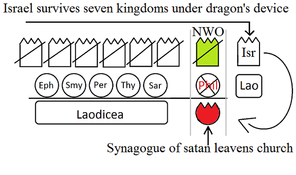 This is the most complete picture yet - one merely has to replace Philadelphia with the source of leaven and then place the little horn as the "rest element" of the beast (that may also be replaced by image - the ten kings). The device of satan has been employed on Israel since Egypt and has left its impression. It is ideal as a leavening influence within the beast system. However the damage is done by the false church of the synagogue of satan, the false prophet, not the little horn.