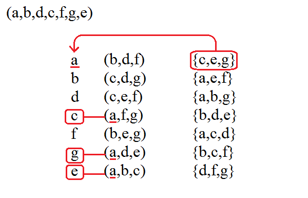 i.e.: (a,b,d,c,f,g,e) corresponds to a fixed group under frobenius of [0,b,d,f] with a = 1. Then, in correspondence between right and left hands,