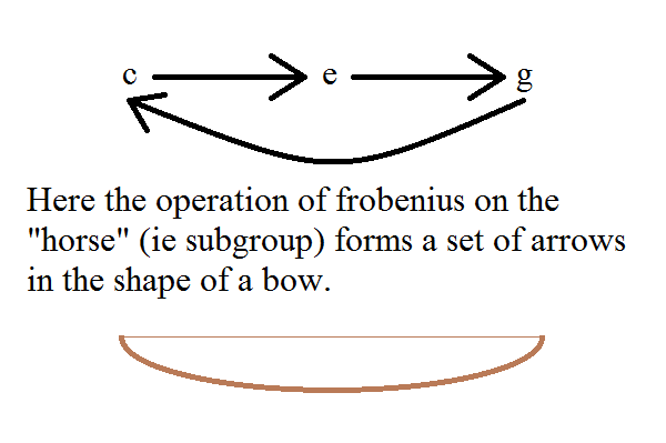 What is meant by the rider "has a bow"? (or as of the simplest fabric)? Well we see how (b,d,f) is fixed under frobenius,.. Likewise the complement subgroup in the left hand is also fixed, (though the operations are not the same as in the right hand.