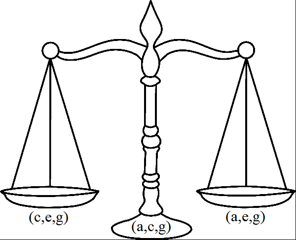 By "they should kill one another" we mean to be that they should cancel each other out. if we take a = (c,e,g) and c = (a,e,g) then we may substitute one into the other.