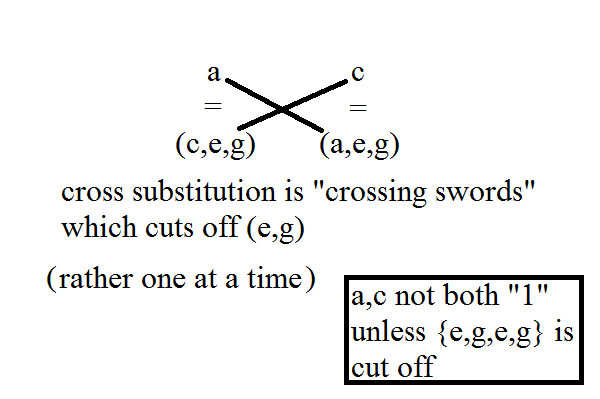 Then we may consider cross substitutions as "crossing swords" or that somehow "c" falls upon "a" and then they cancel each other.